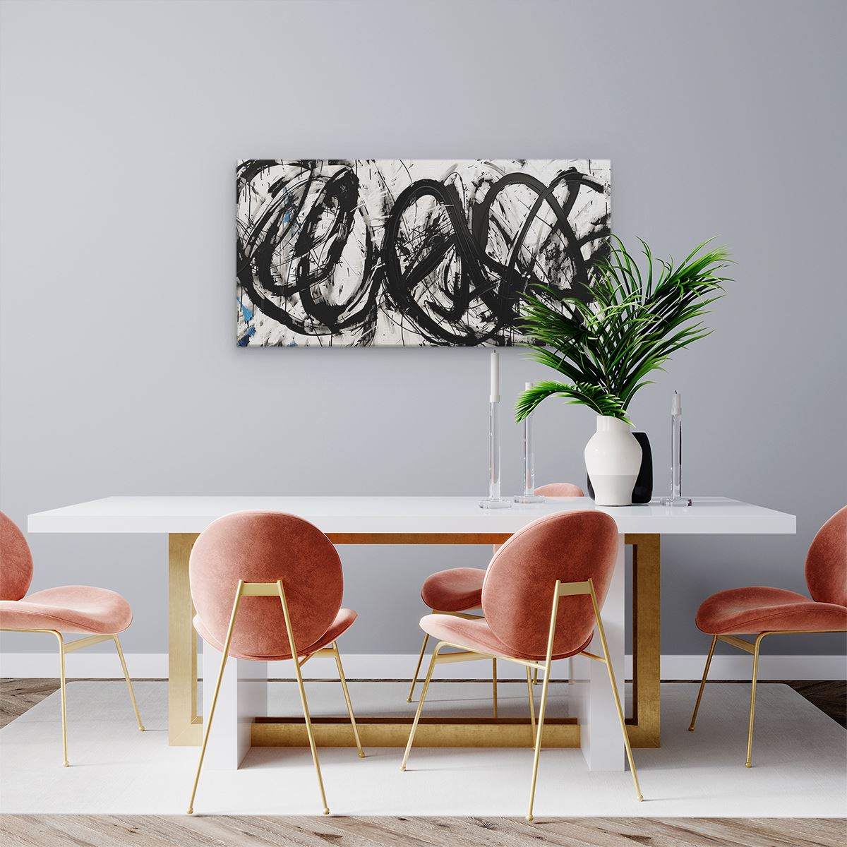 Schilderij Zwart Wit Kunstwerk met Veel Wervelingen