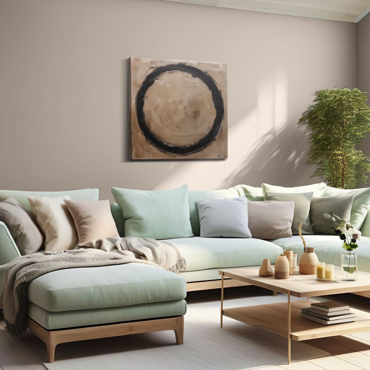 Schilderij Zwart Wit Kunstwerk van een Cirkel