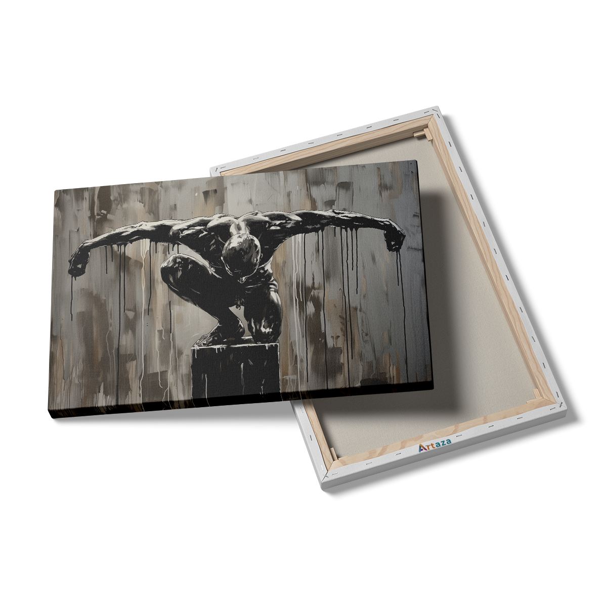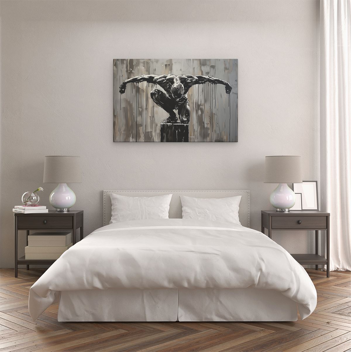 Schilderij Zwart Wit Kunstwerk van een Man op een Sokkel