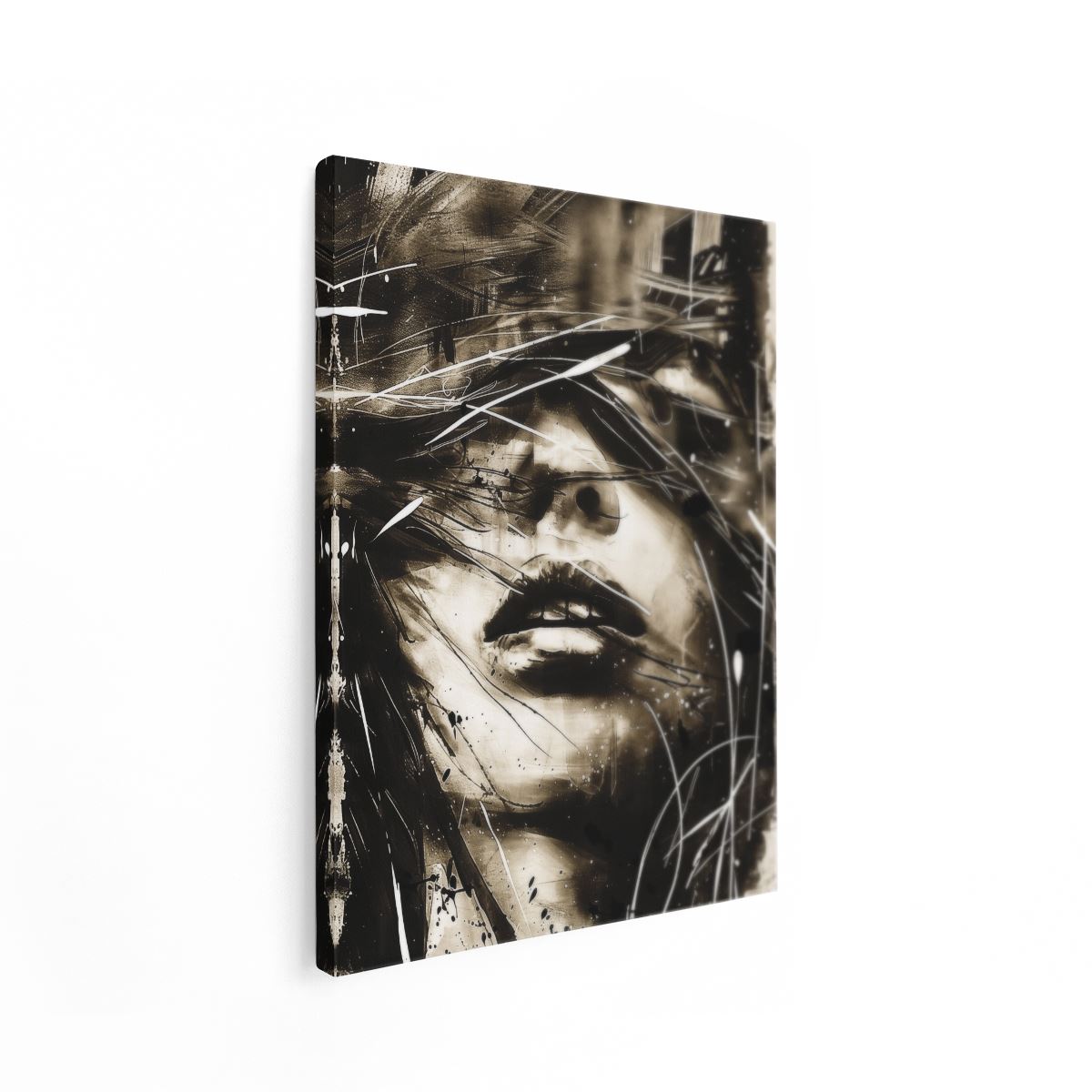 Schilderij Zwart Wit Kunstwerk van het Gezicht van een Vrouw