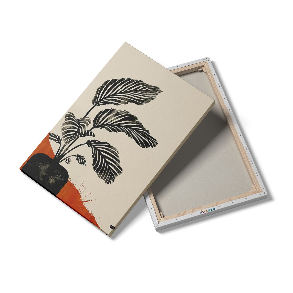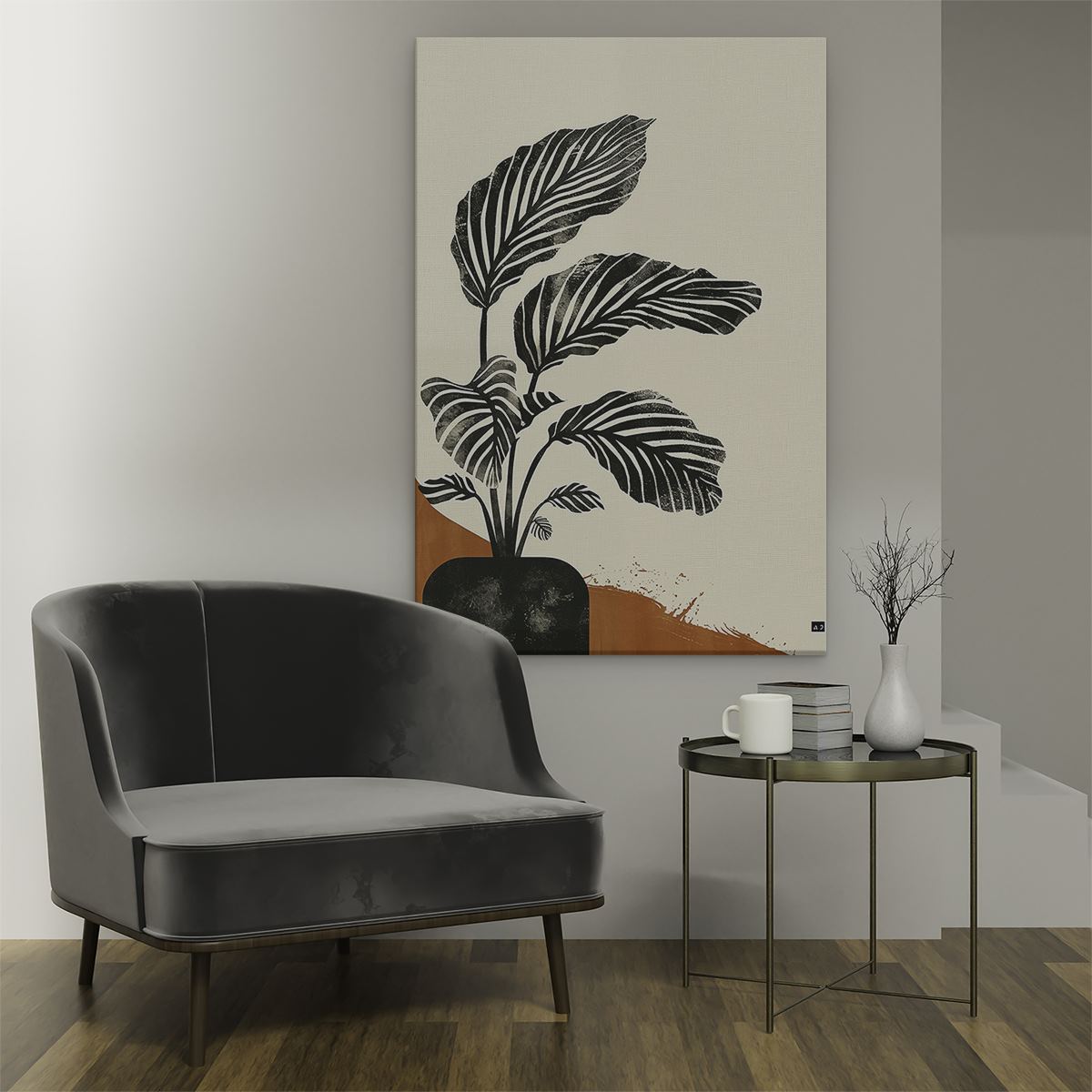 Schilderij Zwart Wit Tekening van een Plant in een Pot
