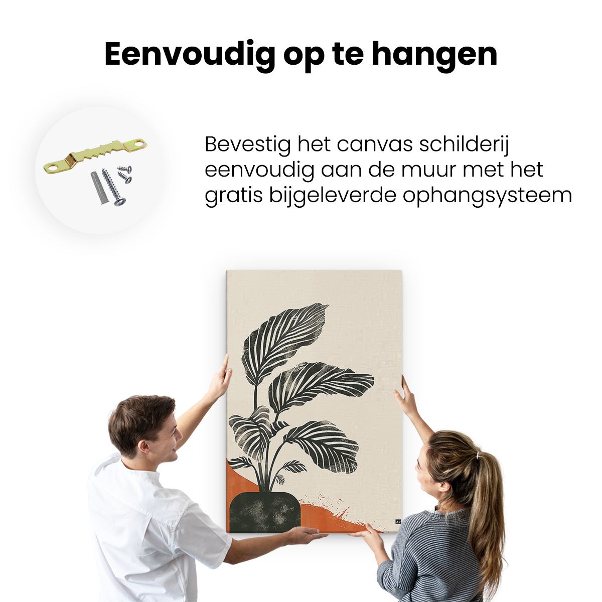 Bij aankoop ontvang je een meegeleverd ophangsysteem, zodat je op een simpele en snelle wijze het schilderij boven de bank of bed kan monteren.
