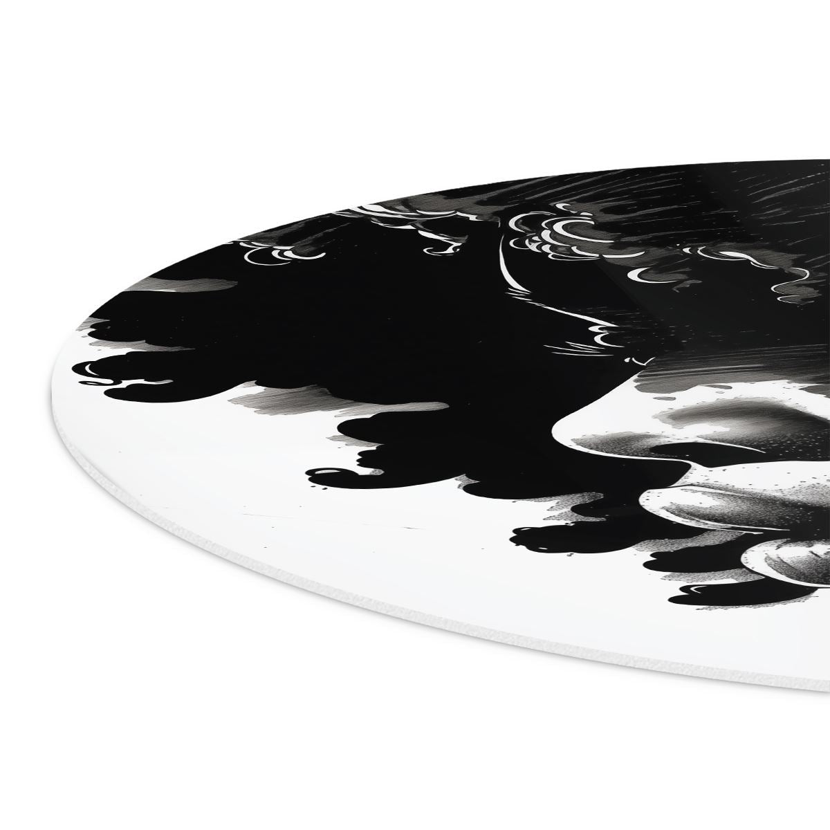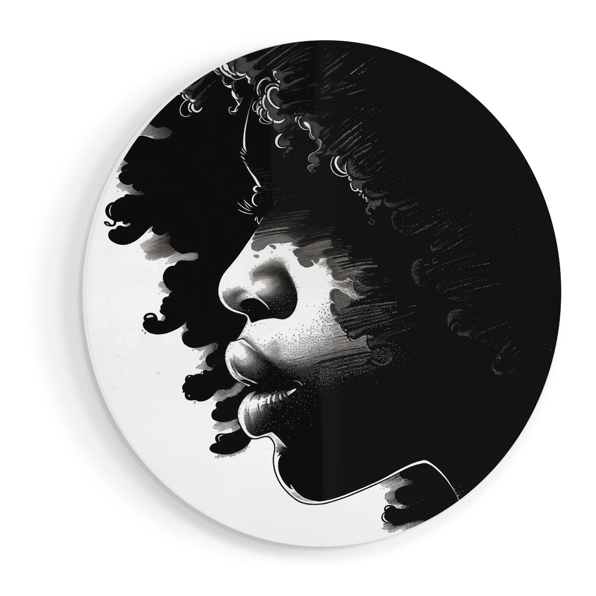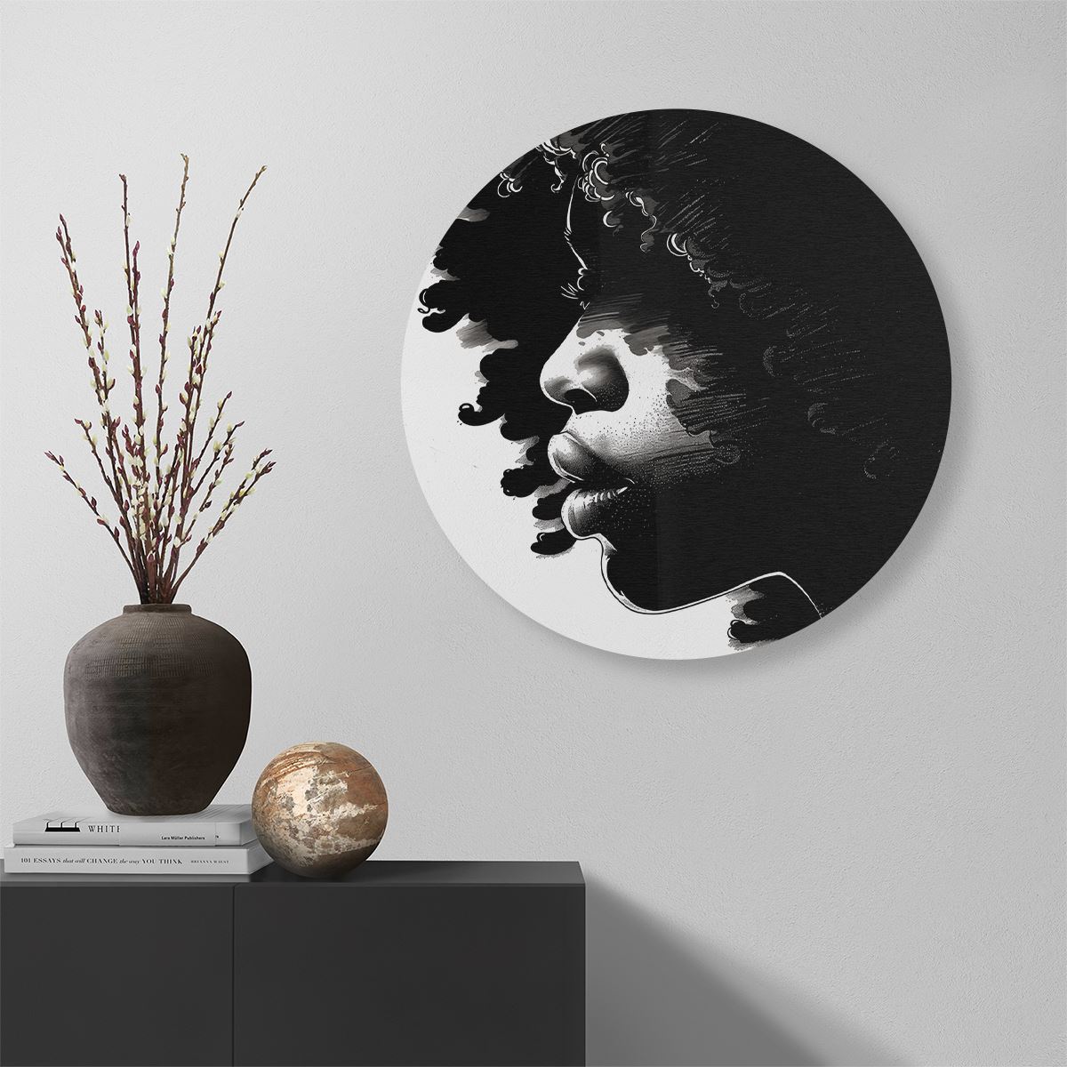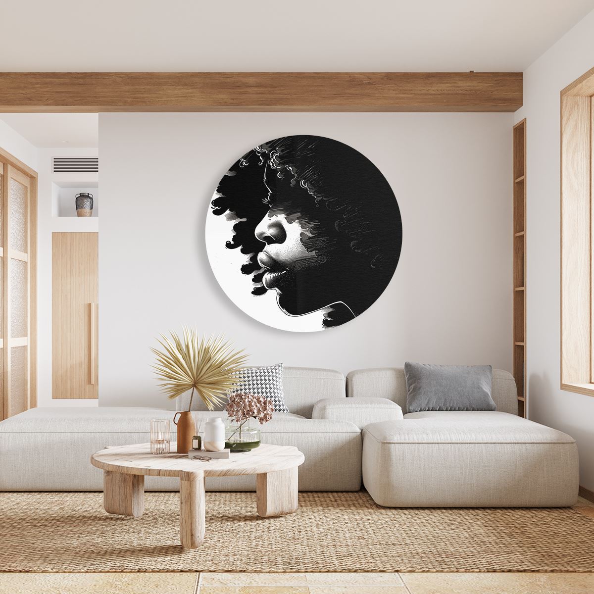 Wandcirkel Zwart Wit Tekening van een Vrouw met Afrohaar