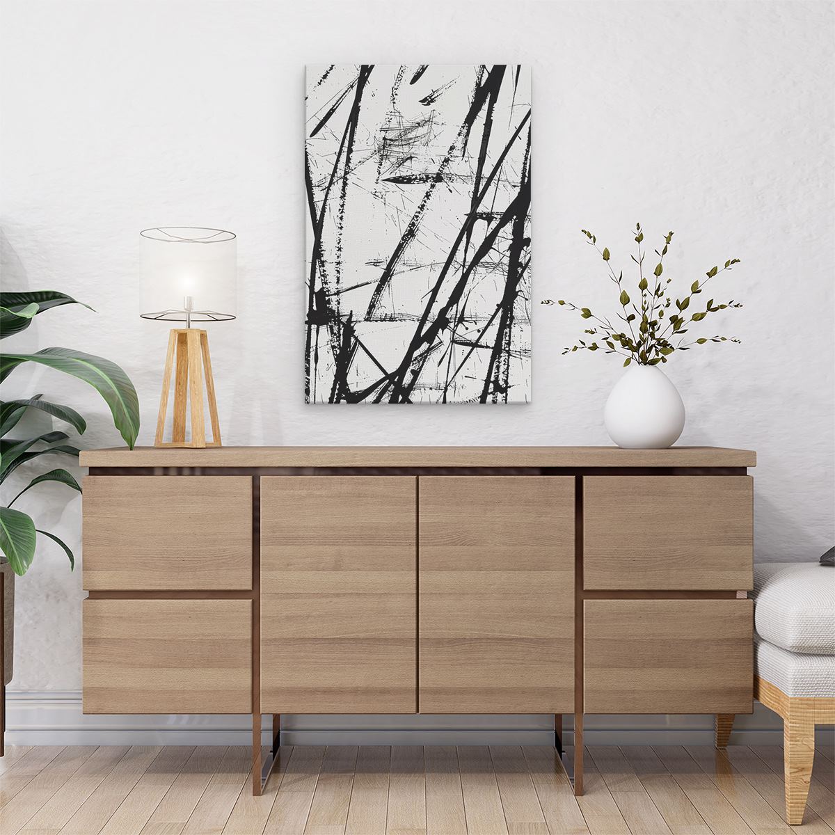 Schilderij Zwart Witte Penseelstreken op een Witte Achtergrond