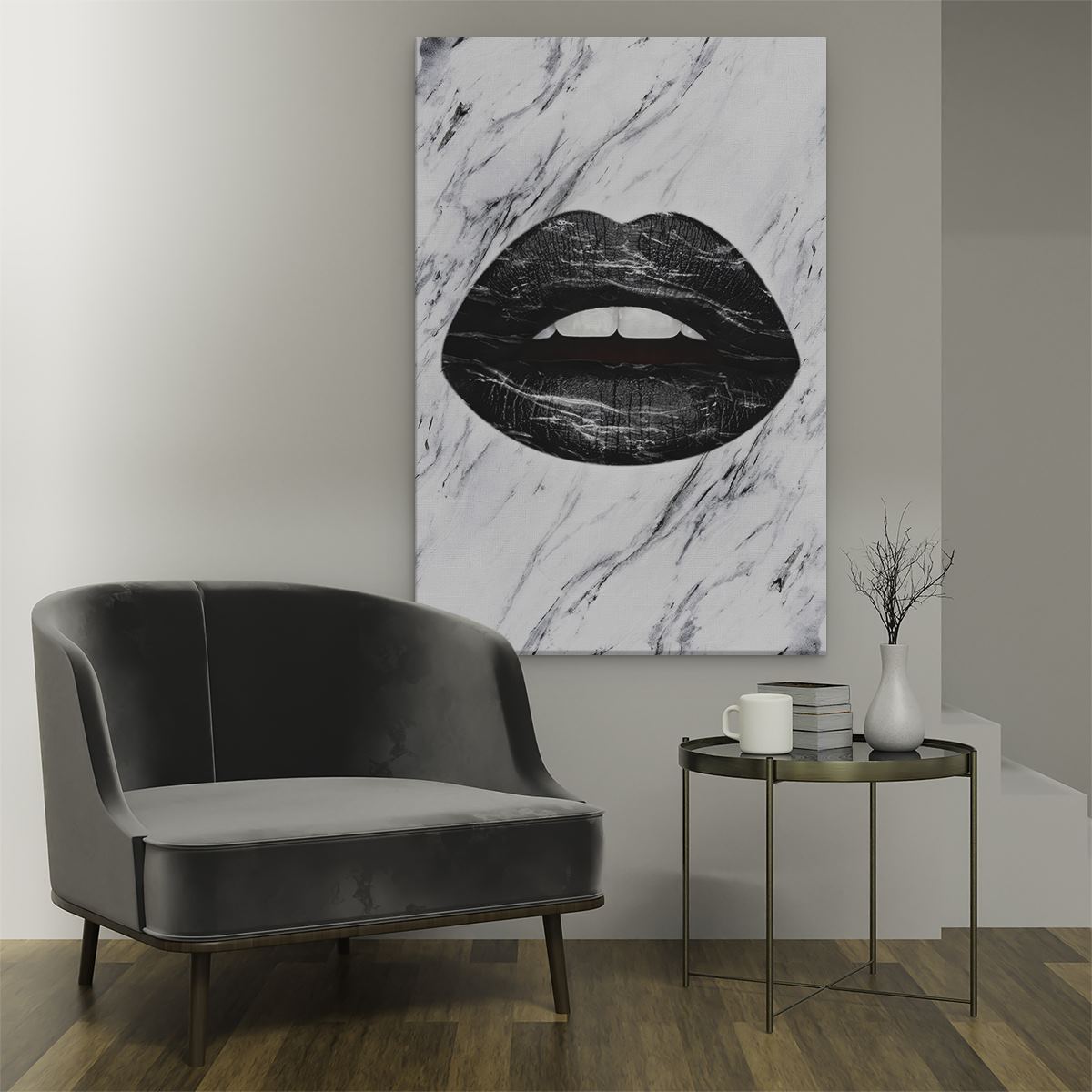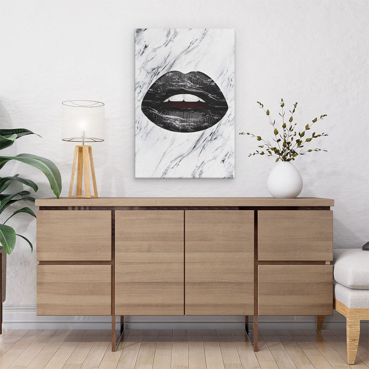 Schilderij Zwarte Lippen op een Wit Achtergrond