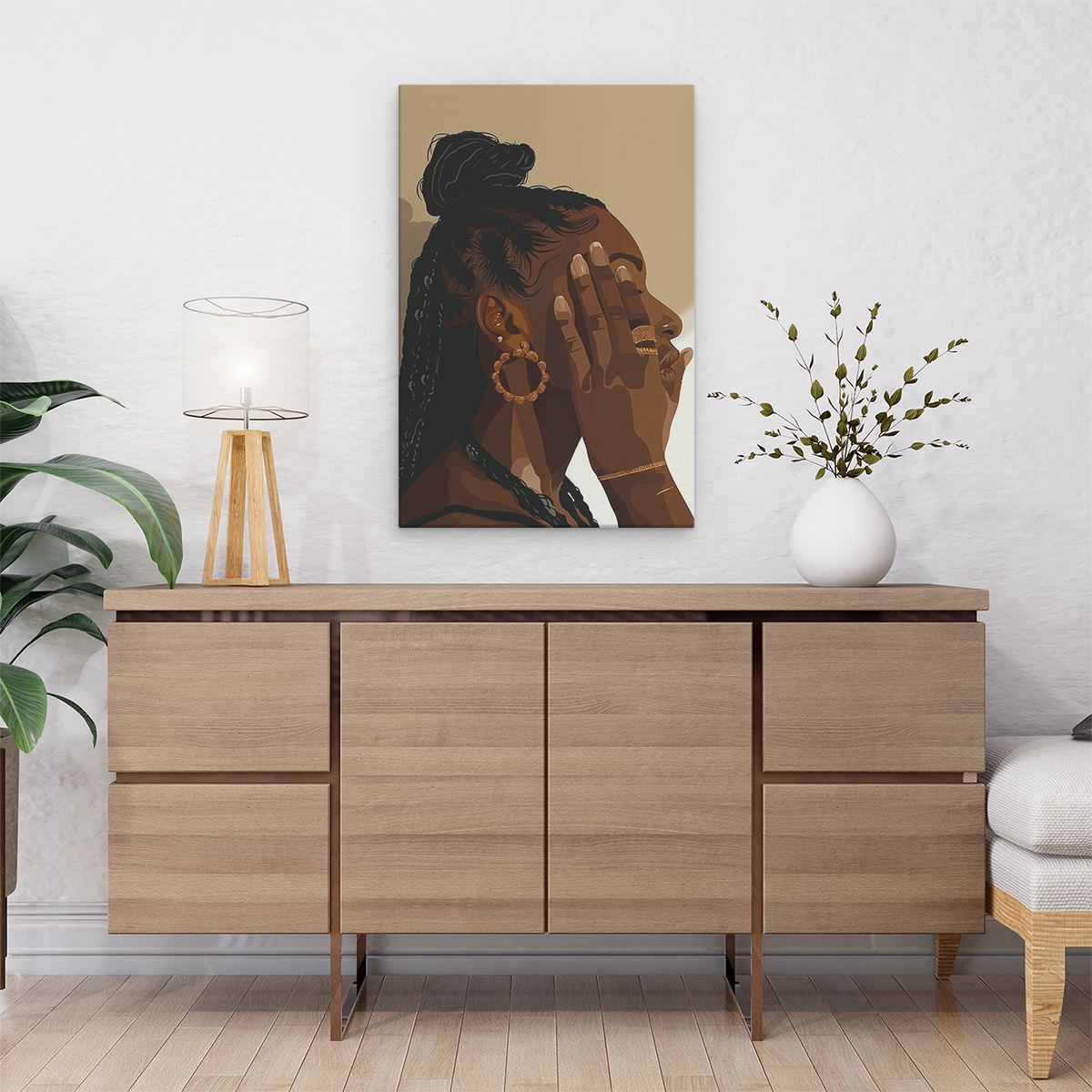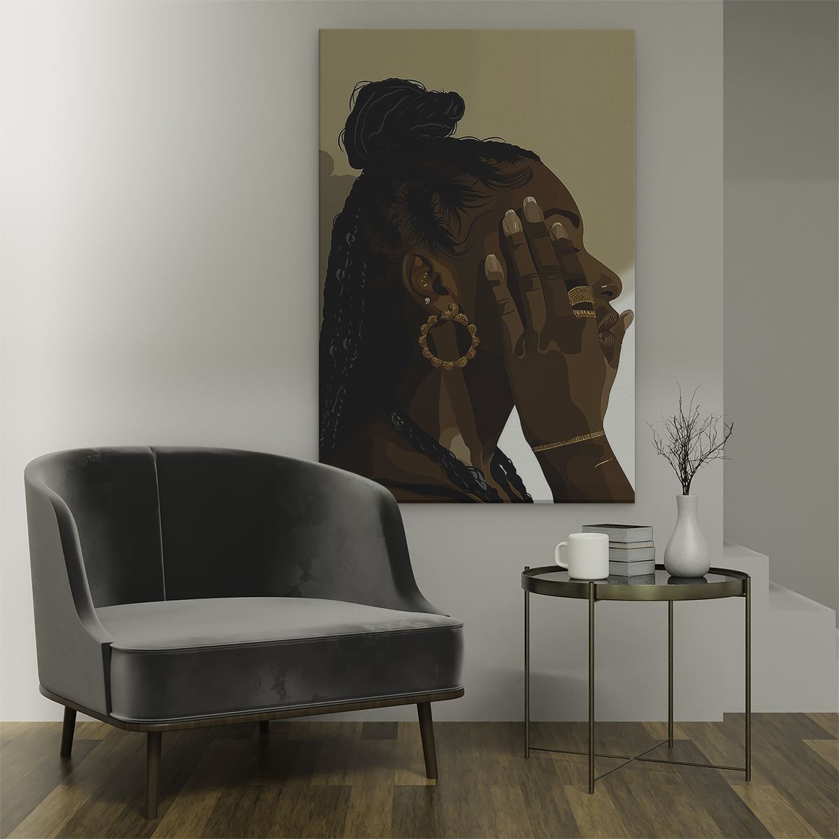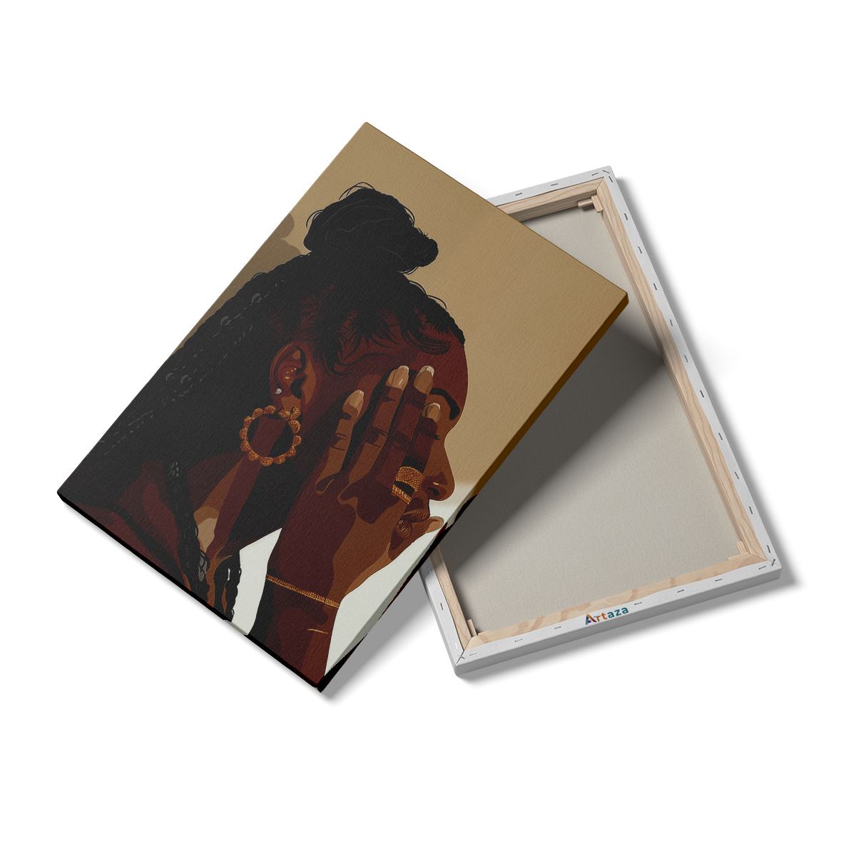 Schilderij Zwarte Vrouw die haar Hand tegen haar Gezicht Hield