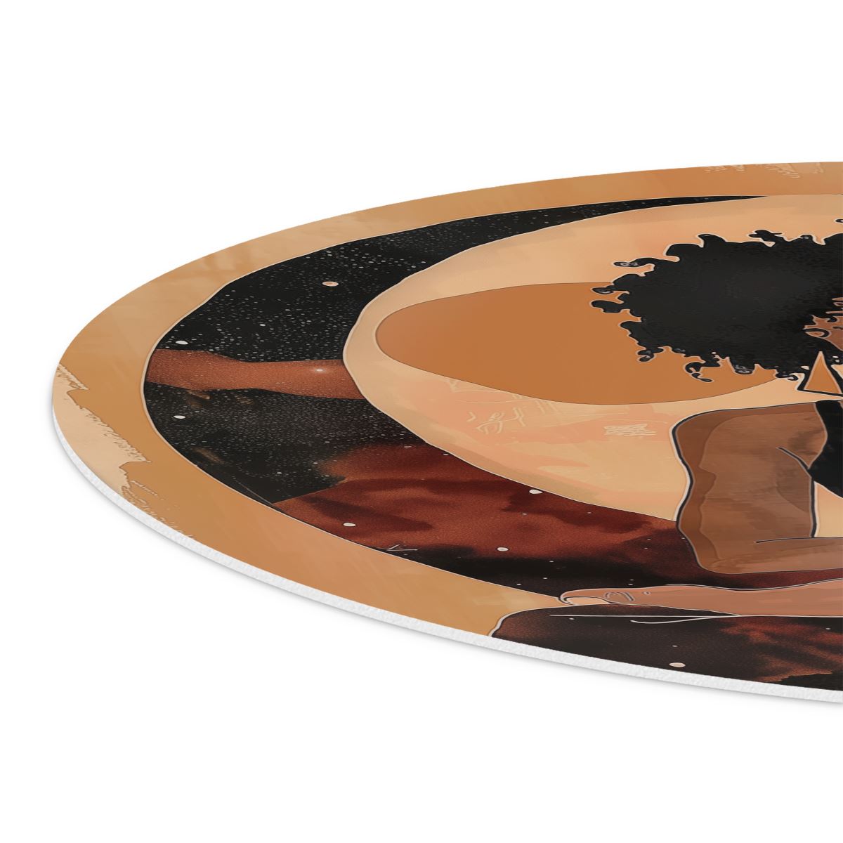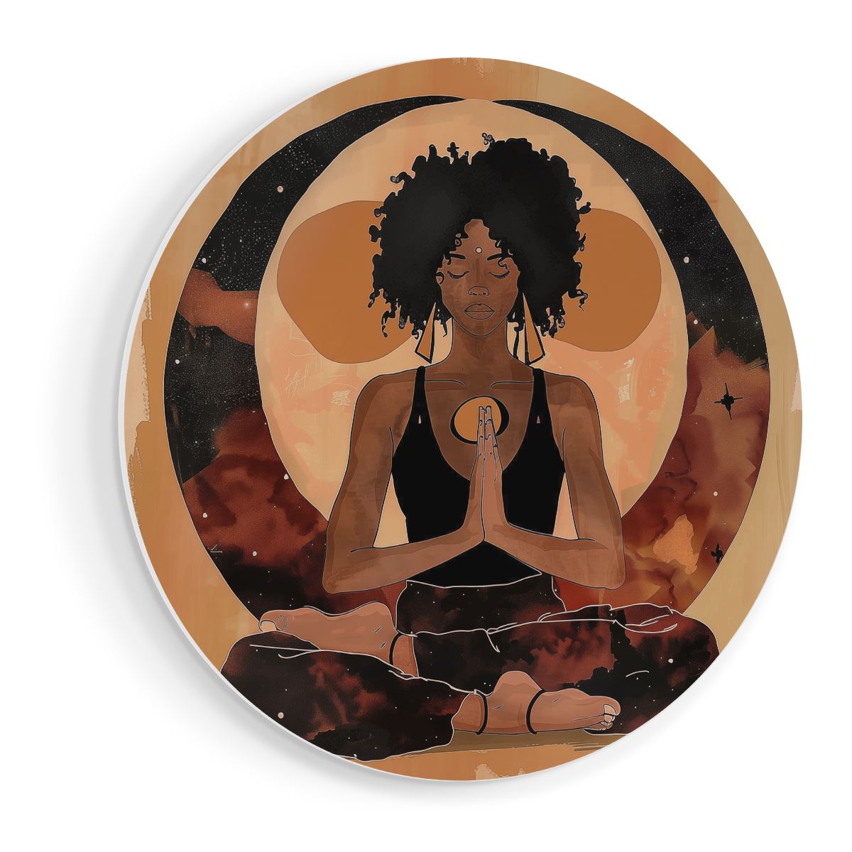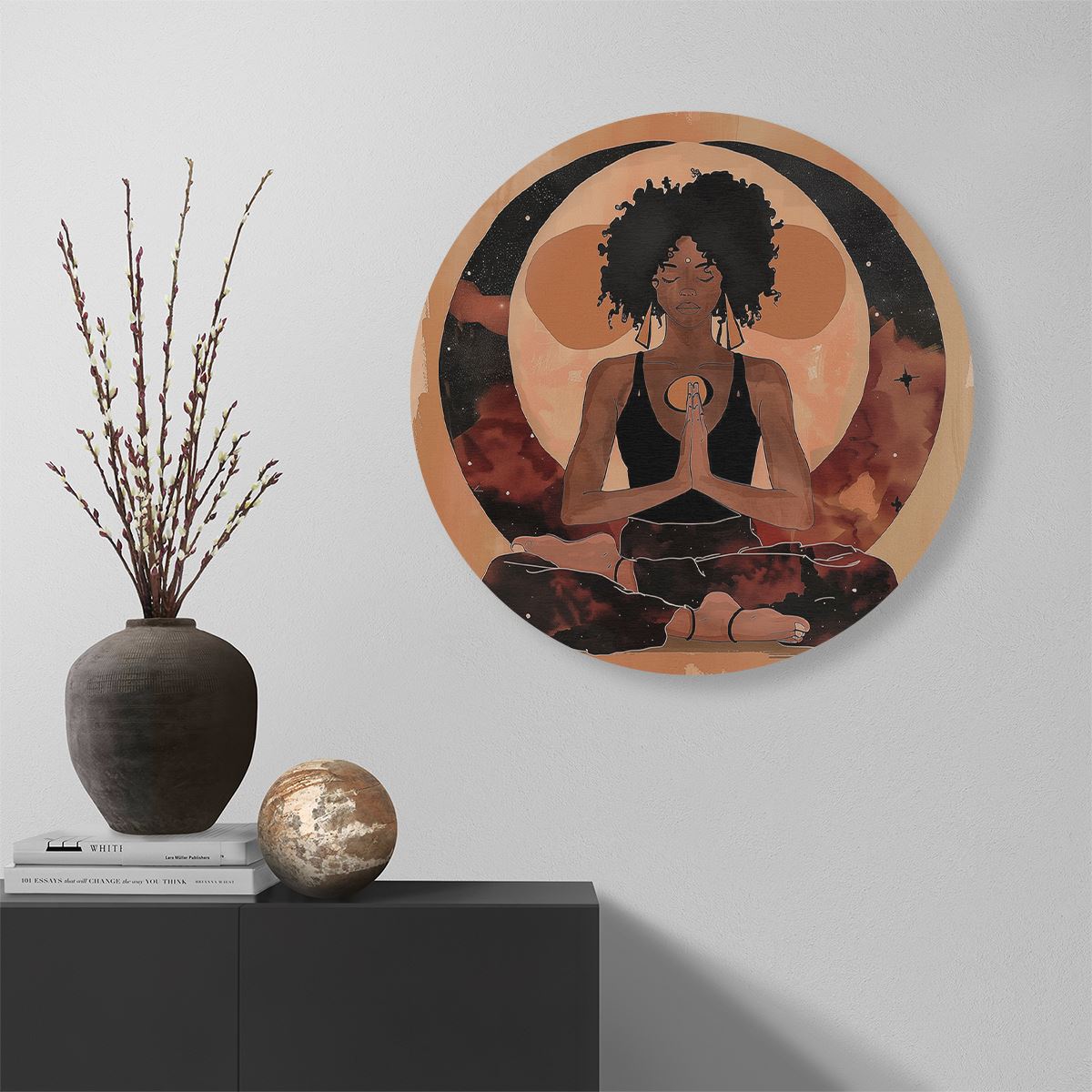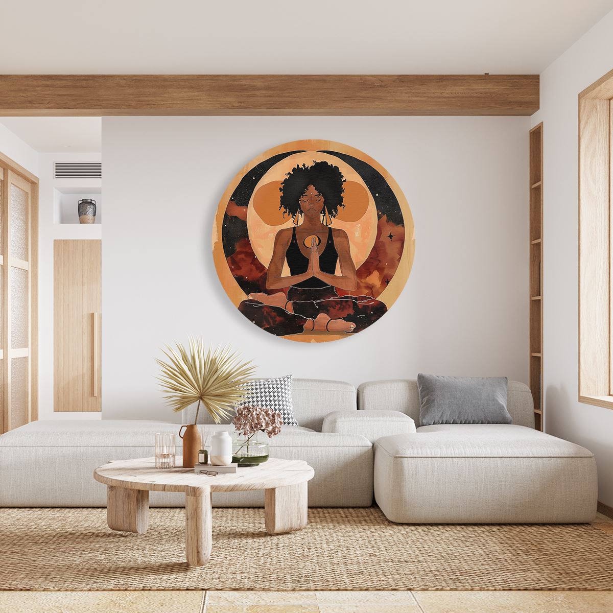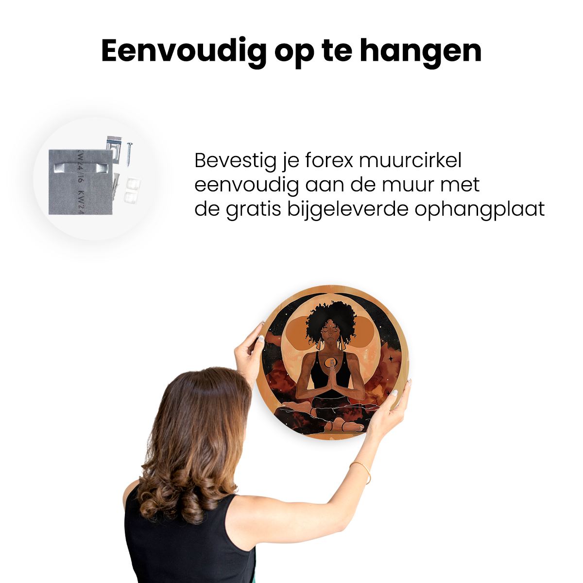 Wandcirkel Zwarte Vrouw die op de Maan Mediteert