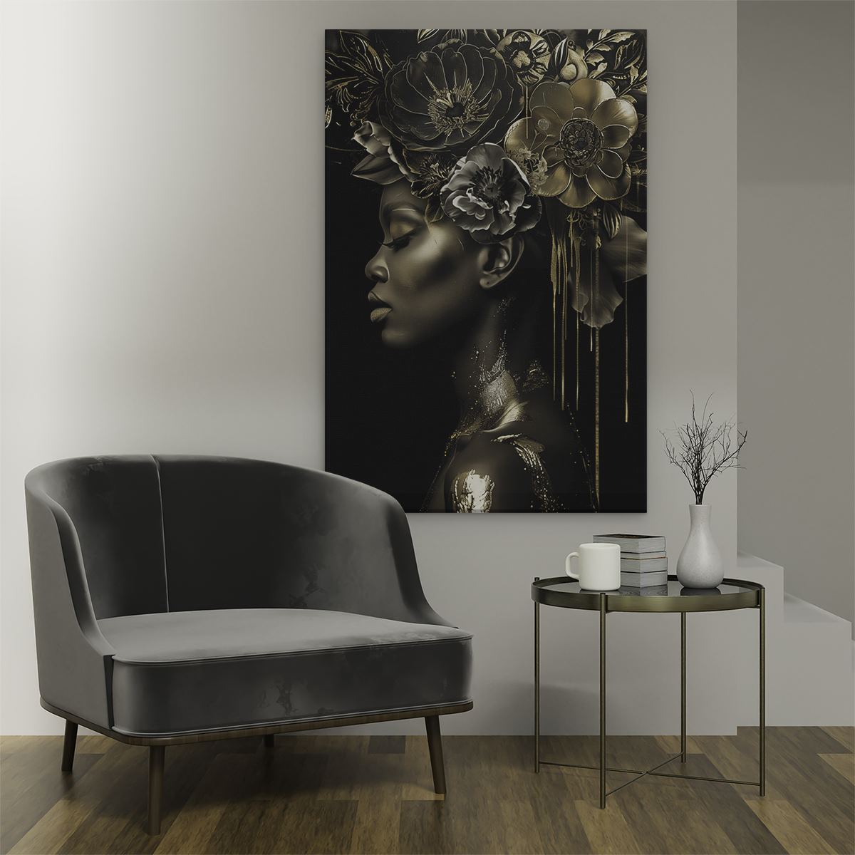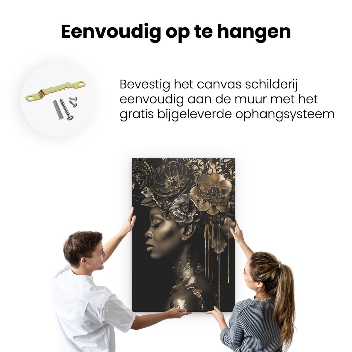 Schilderij Zwarte Vrouw met Bloemen op haar Hoofd