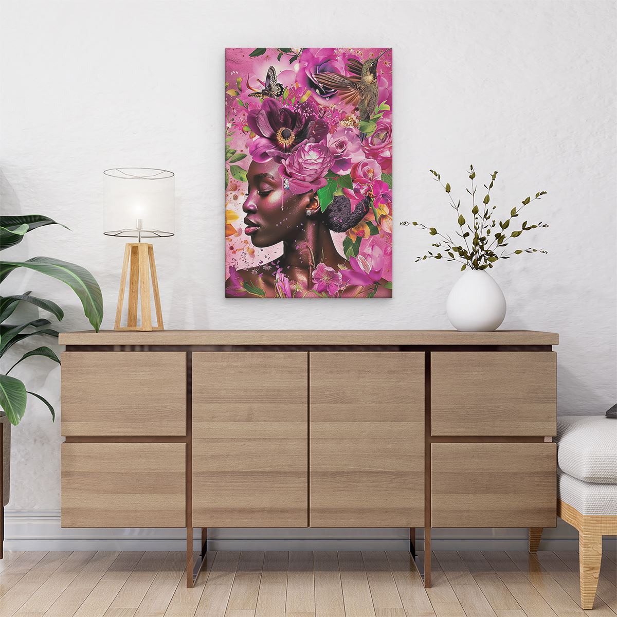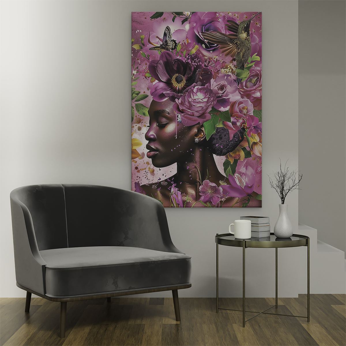 Schilderij Zwarte Vrouw met Bloemen op haar Hoofd