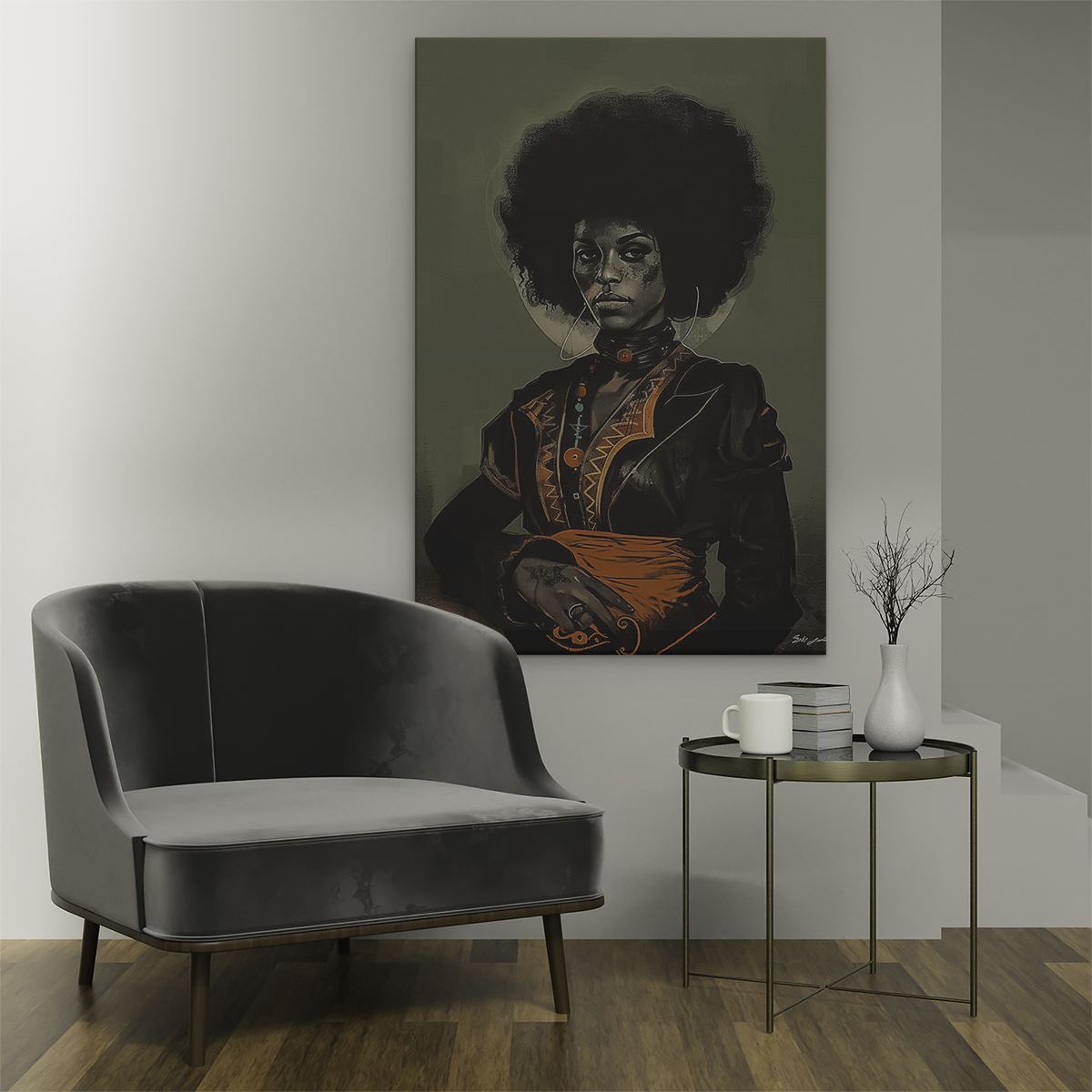 Schilderij Zwarte Vrouw met een Afro