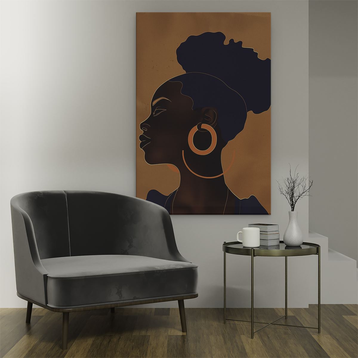 Schilderij Zwarte Vrouw met een Hoepeloorring