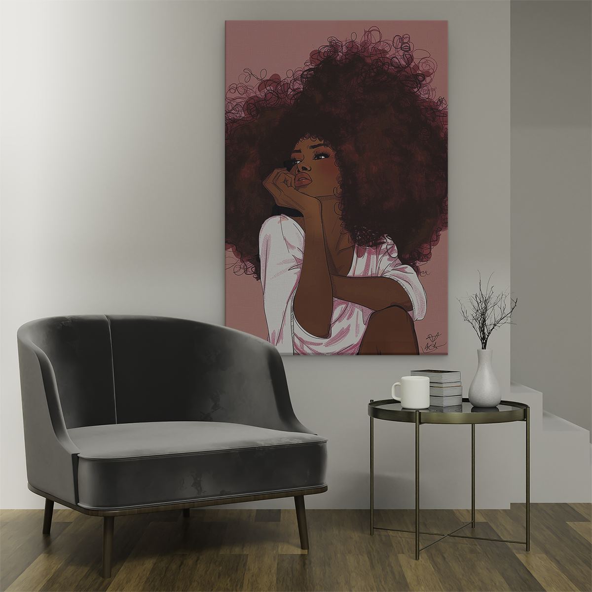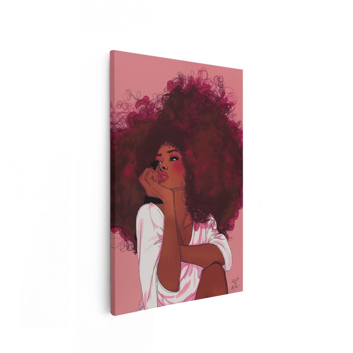 Schilderij Zwarte Vrouw met een Krullende Afro
