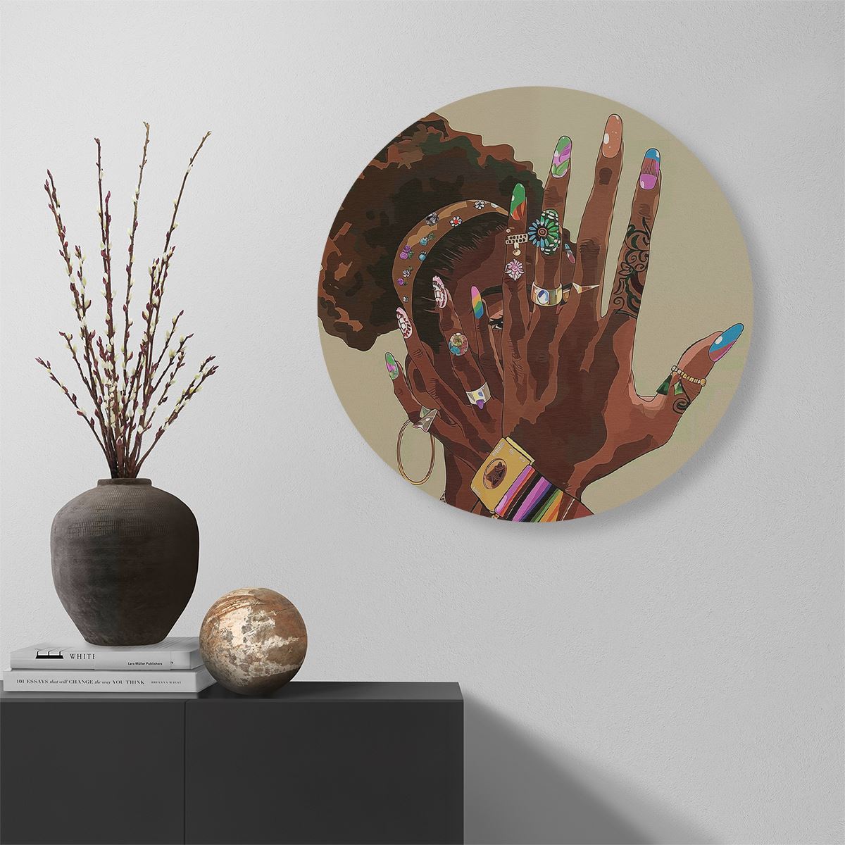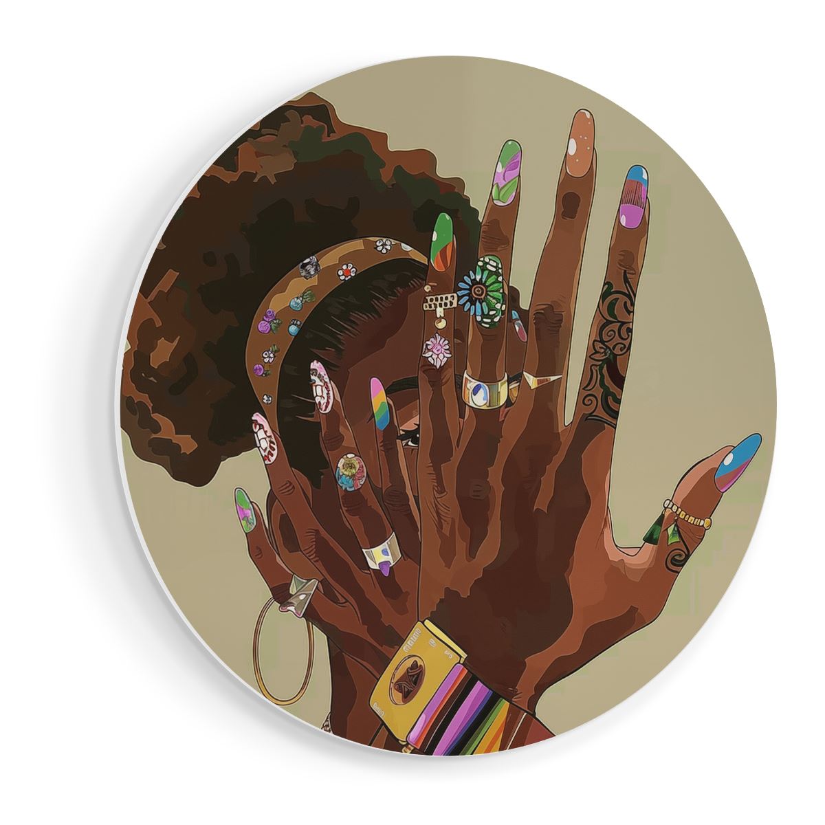 Wandcirkel Zwarte Vrouw met Kleurrijke Nagels